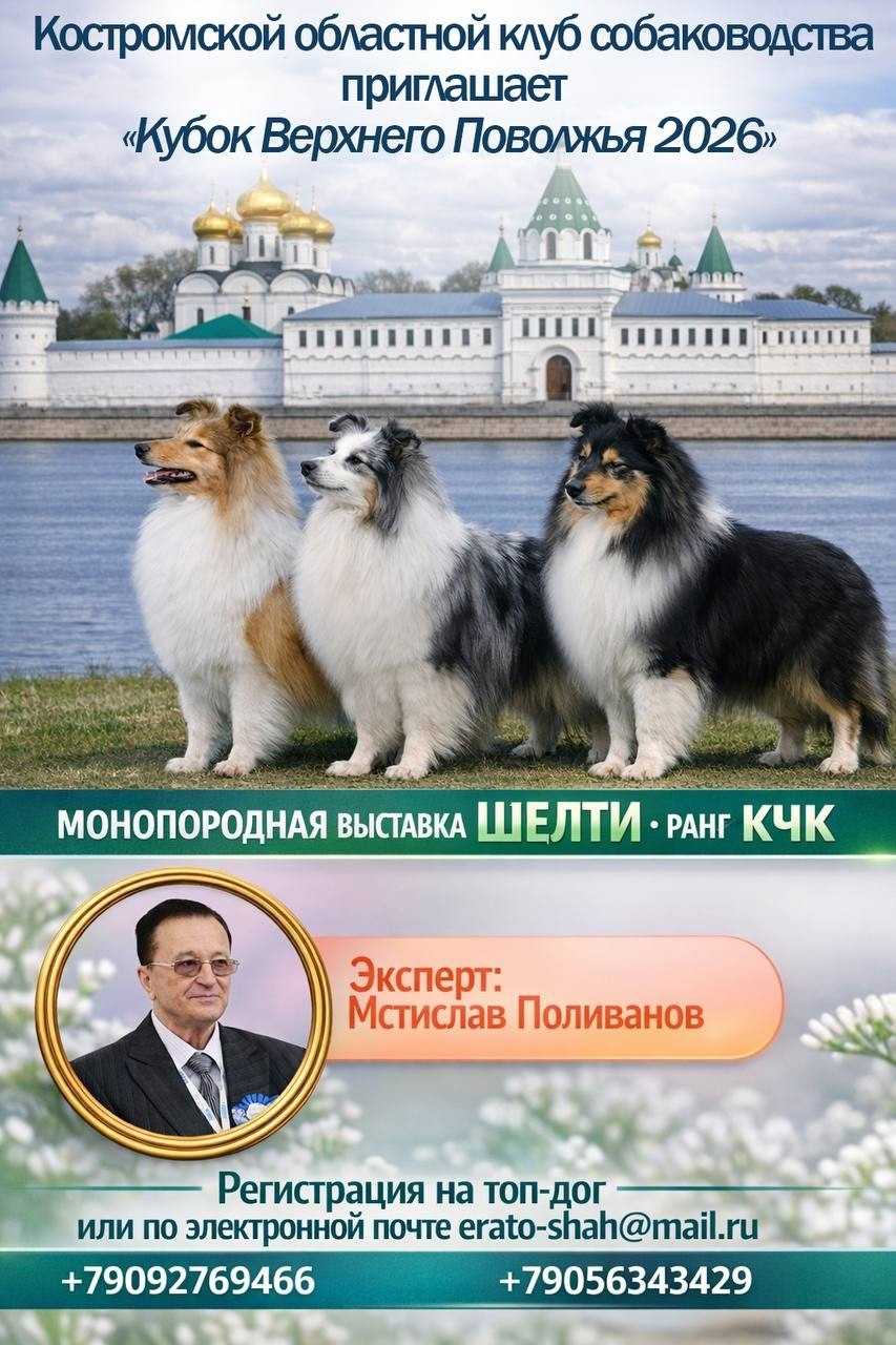 | 26.04.2026 | Монопородная выставка кчк шелти | Кандидат в чемпионы национального клуба породы | Поливанов Мстислав | Расписание | Краткий каталог | Подать заявку |